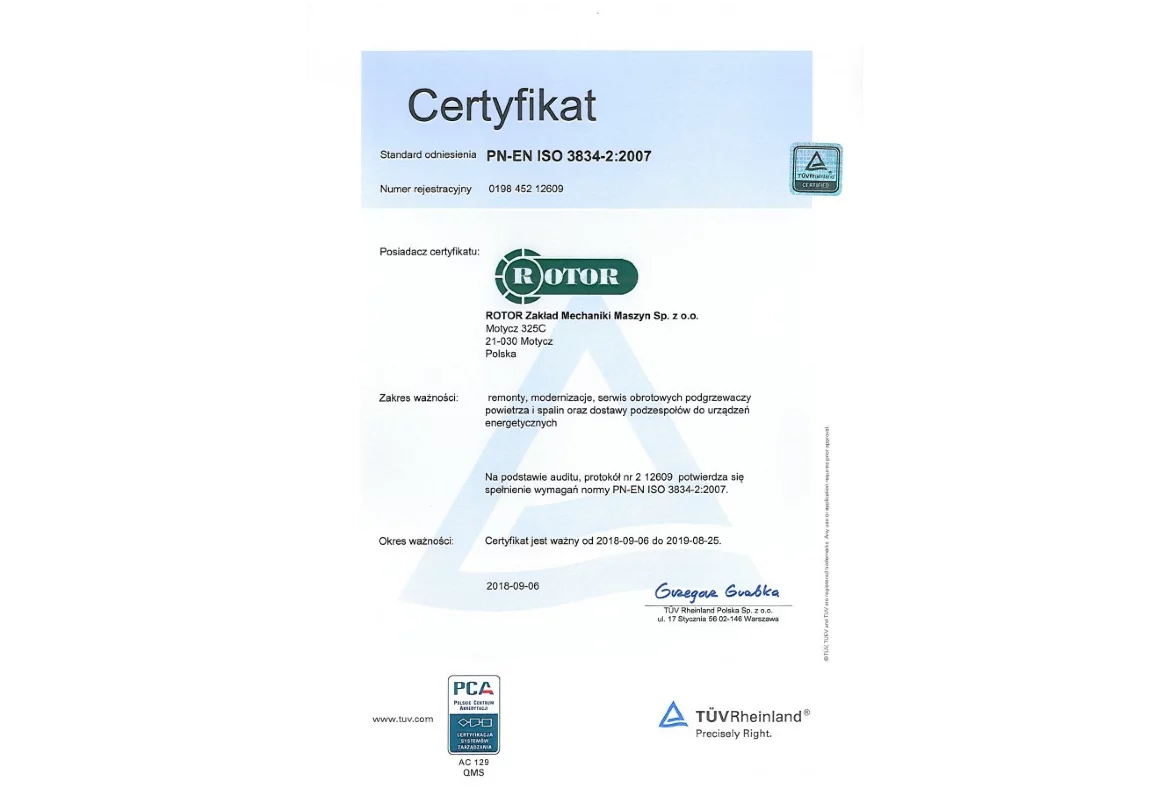 W marcu 2005 r. wdrożyliśmy certyfikowany System Zarządzania Jakością.